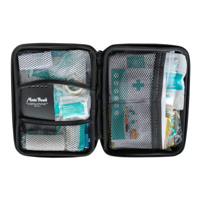 Μεγάλο φαρμακείο Πρώτων Βοηθειών σε μαλακή θήκη, πιστοποιημένο κατά CE. Περιέχει: